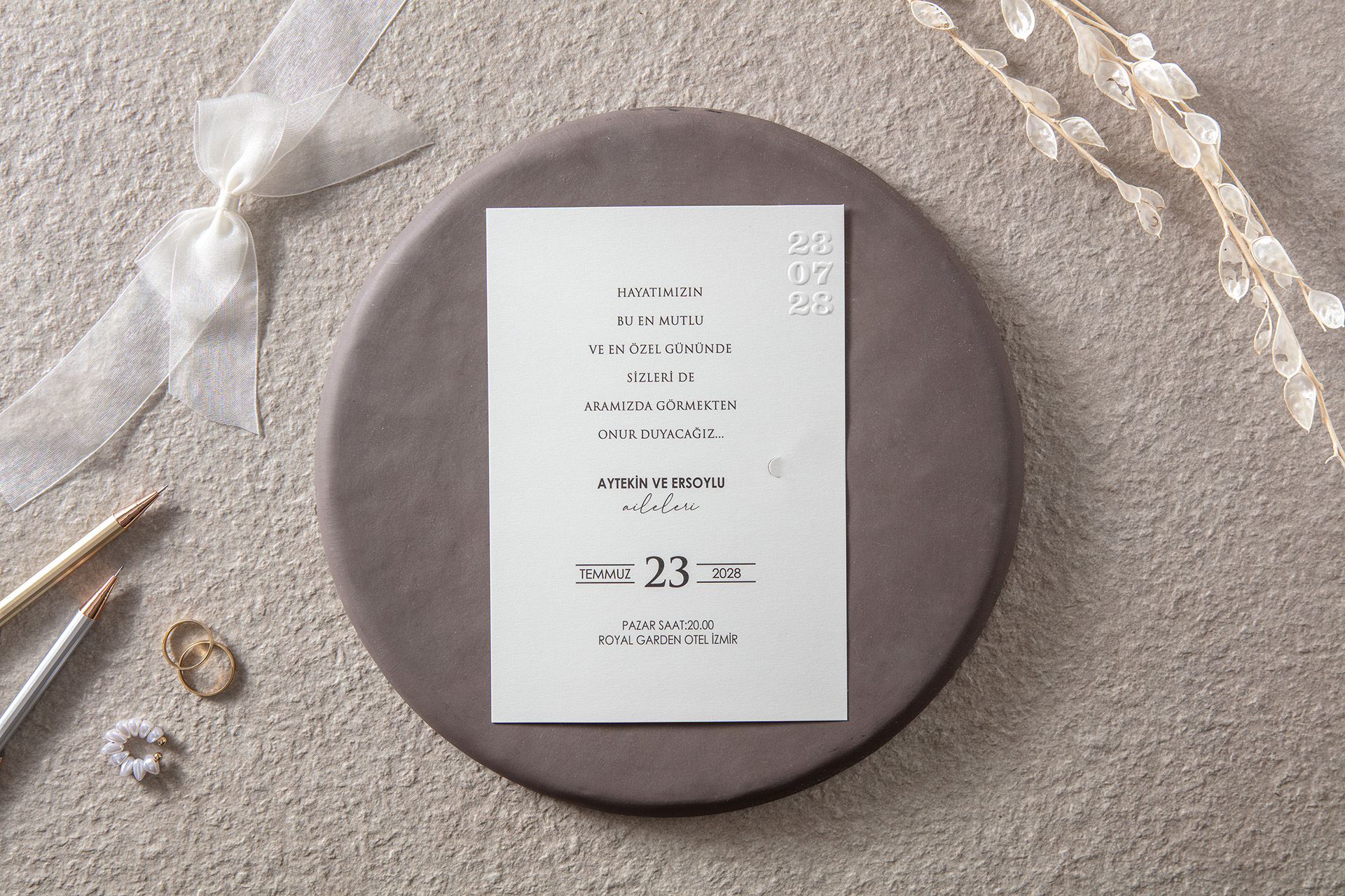 * Pc, tablet ve akıllı telefon gibi cihazlarda görüntülenen davetiye ile teslim alınan ürün arasında ekran çözünürlüğüne bağlı olarak ton farklıkları olabilmektedir.