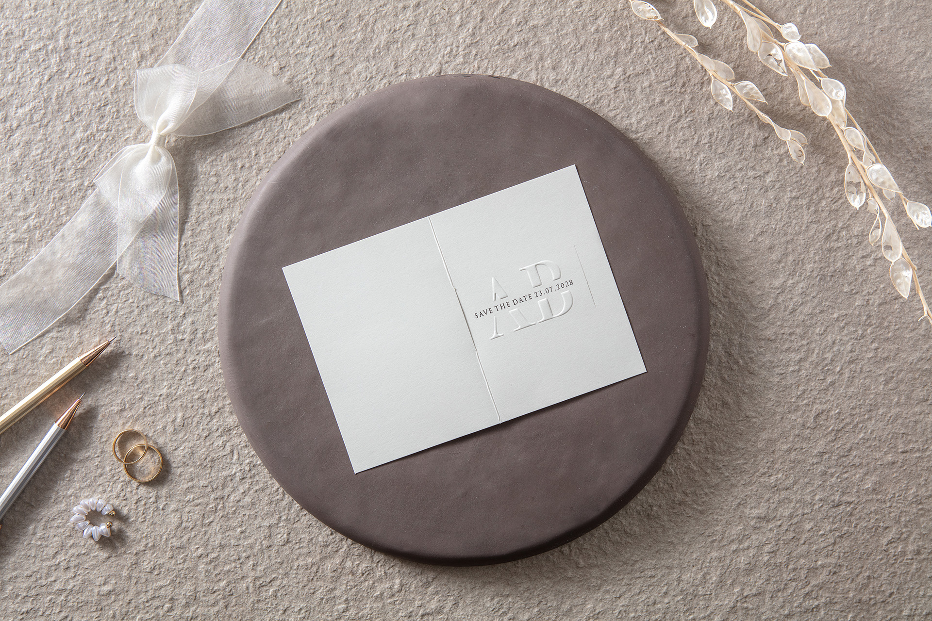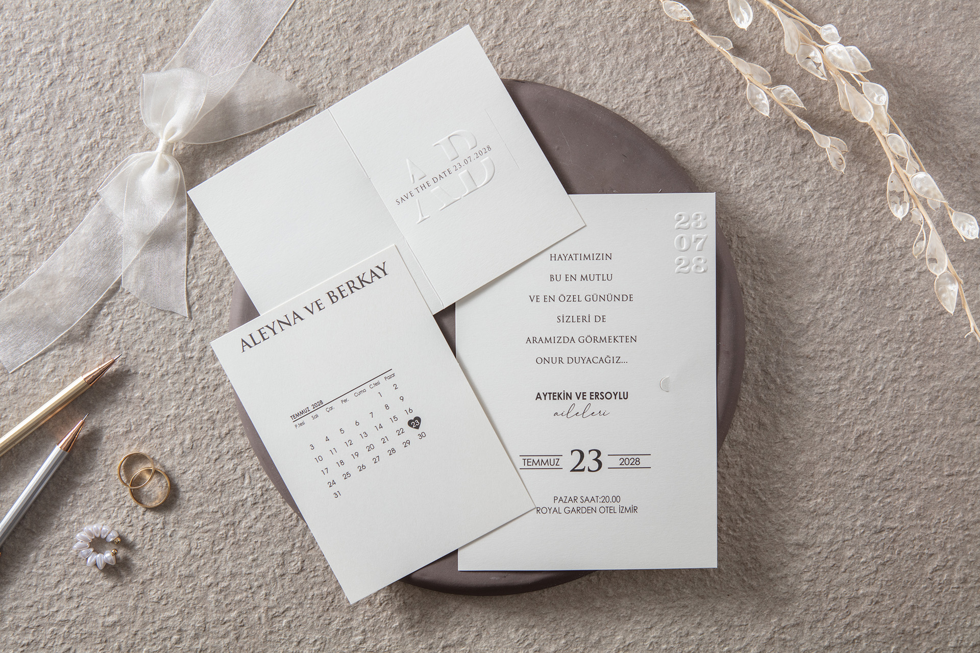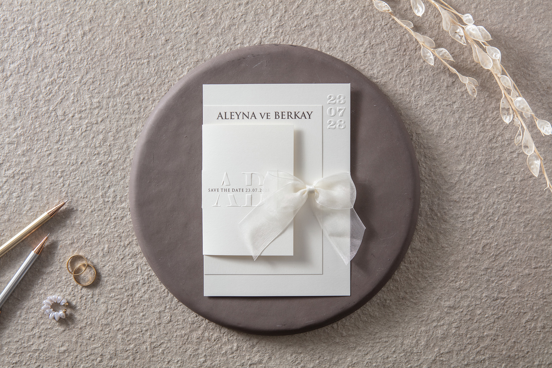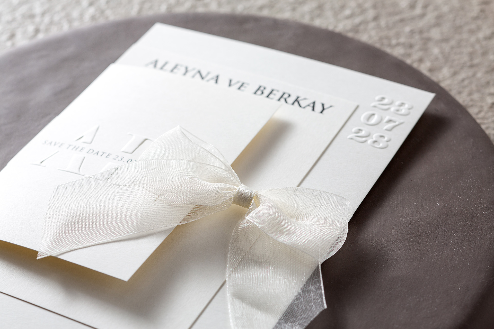 Kabartma tasarımlı düğün davetiyesi