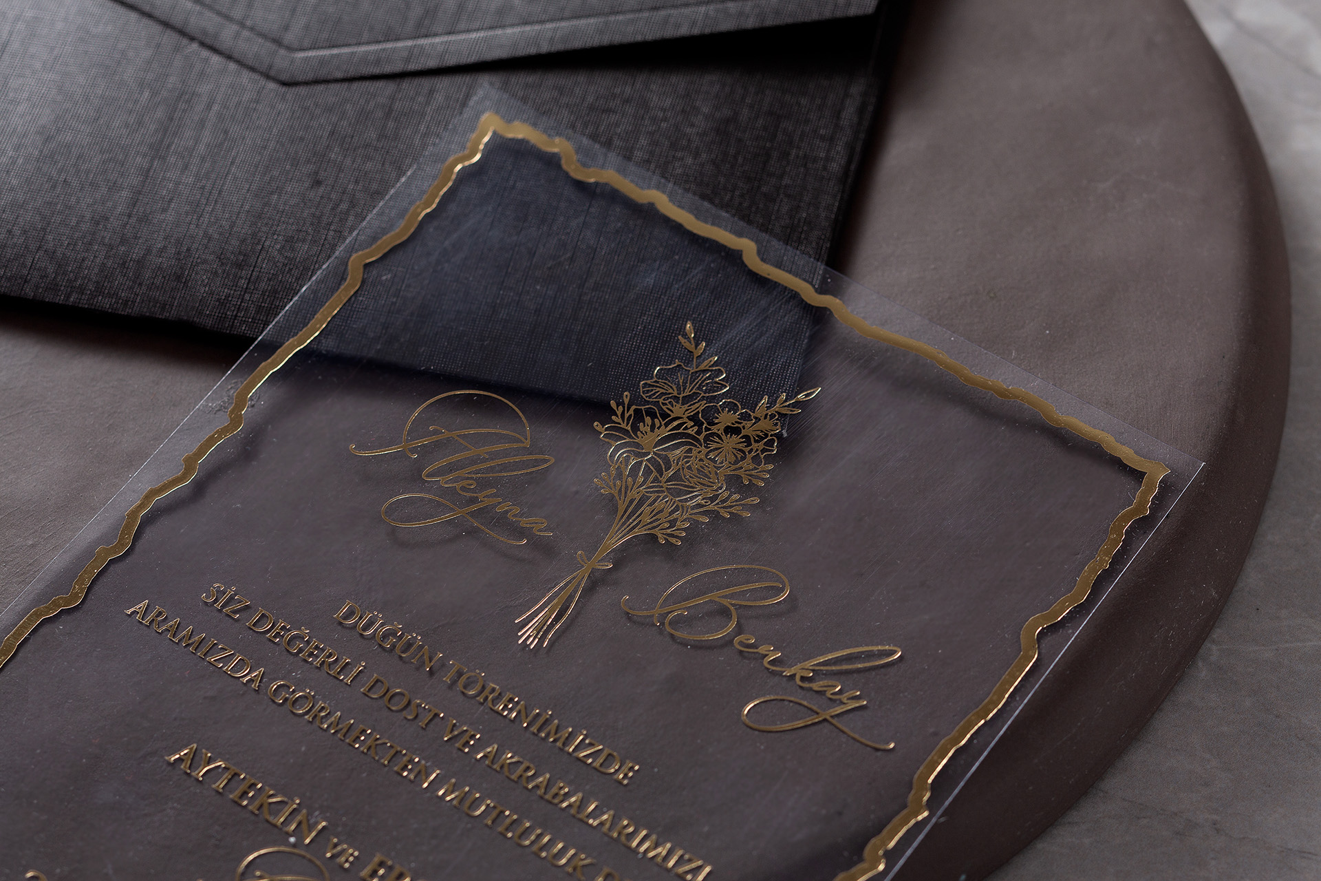 Şeffaf altın yaldızlı davetiye